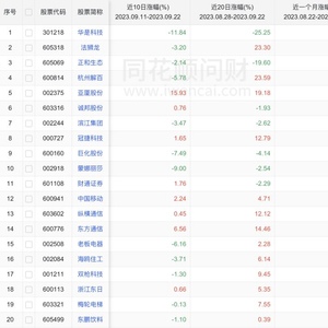 近期相关个股表现愈发抢眼。比如9月1日~9月21日,杭州解百、中装建设(002822.SZ)分别收获4个、2个涨停板;杭州园林(300649.SZ)月内20cm涨停;通宇通讯(002792.SZ)、纵横通信(603602.SH)等近20日涨幅均超10%。