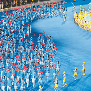 1990年亚运会,手持金牌的熊猫盼盼成为风靡海内外的明星,到处都是它的身影。质朴饱满的形象,象征中国人民的友好;盼盼的名字,是对亚运会的期盼,是对运动员取得优异成绩的祝福,也寄寓了国人对美好生活的期待、对世界和平的向往;广州亚运会 “五羊”联袂,表达出“吉祥、和谐、幸福、圆满”的美好愿望,传递出中国文化的生命力和表现力;西湖边奔跑的“三小只”,又一次把中国的文化张力演绎得格外迷人。