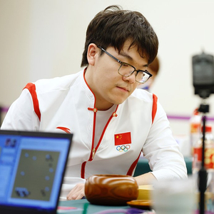 围棋馆里正在进行男子个人预赛的比赛。远处的转播席上,解说员正轻声细语地讲解着局势。场地中铺着厚厚的地毯,工作人员行走其间安静无声。记者站在场边仔细倾听,甚至可以听到“啪”“啪”的落子声。