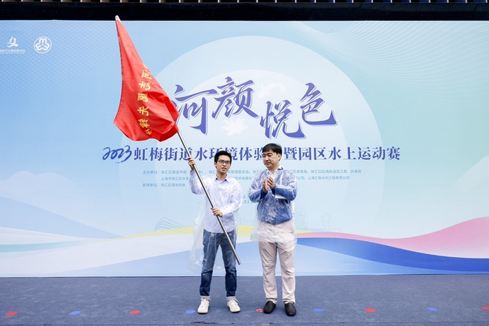 近年来,上澳塘河道水质已达到举行水上运动的标准,其水域清澈平静、深度适中,拥有开展水上运动的有利条件。据介绍,虹梅街道积极践行绿色环保新发展理念,把生态环境保护和水环境污染防治摆在突出位置,让更多居民、企业参与河道整治,将企业纳入加入护河人的大家庭,成立企业河长队伍,引入了7家辖区企业护河志愿服务队。当天活动为虹梅企业河长及护河志愿队服务先进进行了授奖,并为辖区内西位小学成立的“小小河长”志愿队举行了授旗仪式。