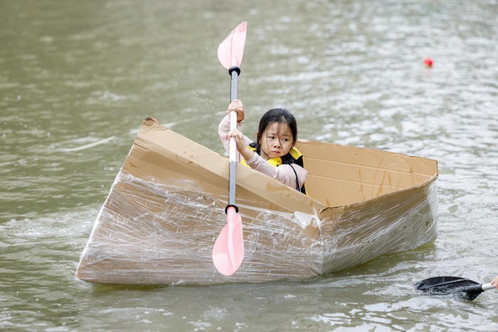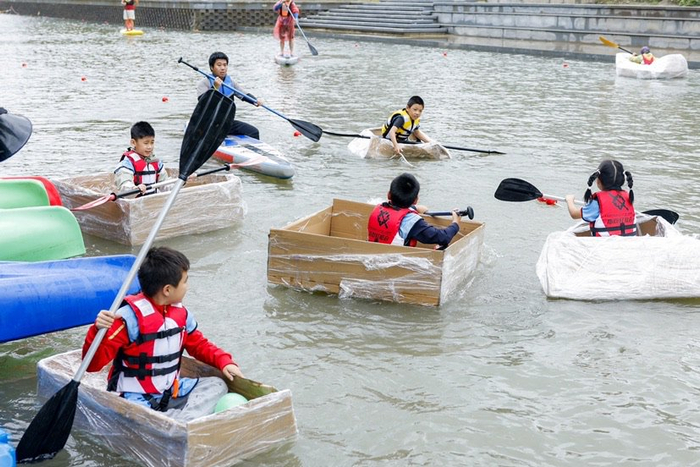 此次体验日活动以纸船DIY制作及皮划艇体验项目为媒介,让周边的企业白领和居民群众有了一个与自然环境亲密接触的机会。来自辖区企业和居民区的选手,用环保材料制作出充满时代特色、企业特色或者家庭创意的“战舰”,趣味满满。