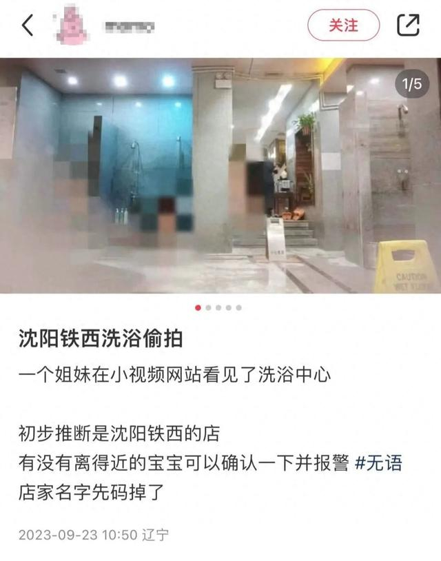 9月23日,有网友发帖称,在小视频网站看到一个洗浴中心偷拍的视频,初步推断是沈阳铁西的店。该网友贴出图片显示,女浴池内被人偷拍,出现女性裸露身体画面。另有聊天记录显示,该网友朋友表示自己曾在几个月前去过一洗浴中心,根据视频中口音和店铺陈设,推测视频地址与与其去过的店高度吻合。