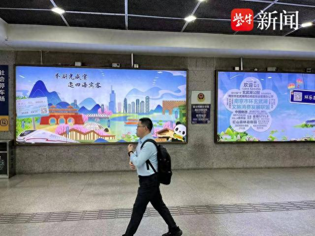 同时,中秋节、国庆节“双节”来临之际,南京站地区“上新”国庆主题氛围装置,位于出站口的灯箱集中“焕新”,通过创意海报集中面向出站旅客推介环玄武湖游玩攻略。