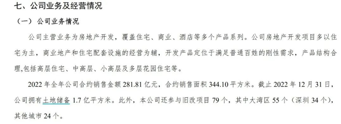 报告显示,2022年全年恒大地产合约销售金额281.81亿元。截止2022年12月31日,公司拥有土地储备1.7亿平方米。此外,本公司还参与旧改项目79个,其中大湾区55个(深圳34个),其他城市24个。