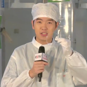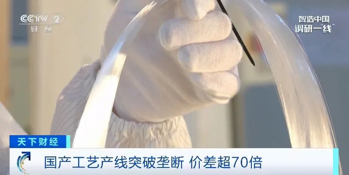 这里是位于湖北潜江的一座光纤智能化生产工厂。记者手里的这根透明的细丝就是光纤,直径是0.2毫米左右,跟头发丝一样细,而它却是由直径200毫米左右、长度约4米的光纤预制棒生产而成。