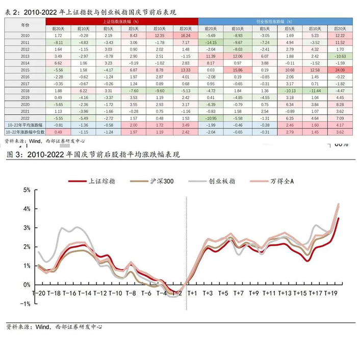 西部证券分析认为,国庆节前后市场有显著的季节性效应。从历史经验来看,2010年以来国庆长假前A股市场往往出现市场流动性收紧、成交量萎缩的格局,带来市场调整风险增加;直到节后风险释放后市场情绪才出现明显回暖,A股短期有概率上演V型反转行情。