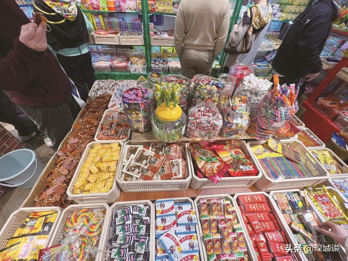 据店铺负责人刘峰介绍,在店面设计和选品方面,自己颇费了一番心思。“既然主打怀旧,就要确保是老零食、老味道。进货前,我会先对不同厂商的同一产品进行试吃,看哪一款更能勾起消费者对儿时的记忆。同时,因为商店所处的位置人流量大、外地消费者多,我也会兼顾不同地域和不同偏好人群的需求。例如有人喜欢辣条,有人偏好糖果,有人更爱‘南京板鸭’,我都会想办法兼顾”。