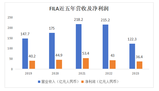 而在这众多品牌中,FILA作为贡献集团整体收益41.3%的品牌,成为了安踏主品牌的“兄弟”。从营收上看,在经历了2022年短暂的挫折后,FILA快速完成了调整,其中净利润更是完成了惊天逆转,按照2022年43亿元的标准来说,在半年时间里已经完成了84.7%。