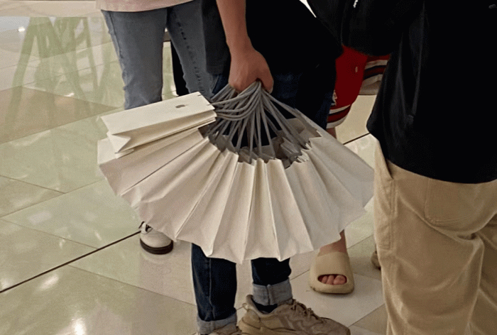 记者注意到,除了取机和体验的消费者,现场有不少黄牛,他们手提数十个苹果购物袋,看到有人从店中走出,便主动上前询问是否回收或出售新机。