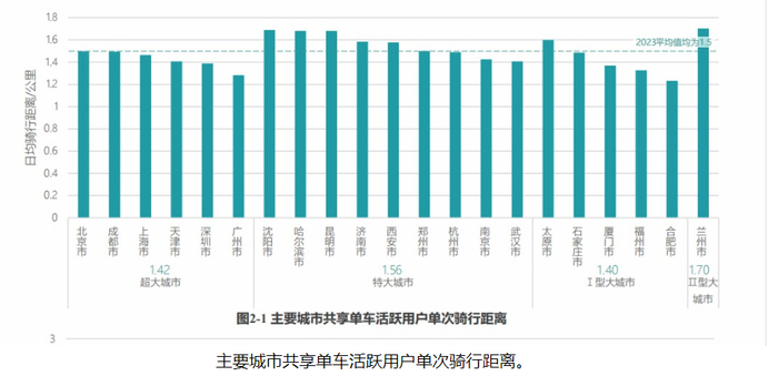 共享单车单次骑行平均距离1.5公里