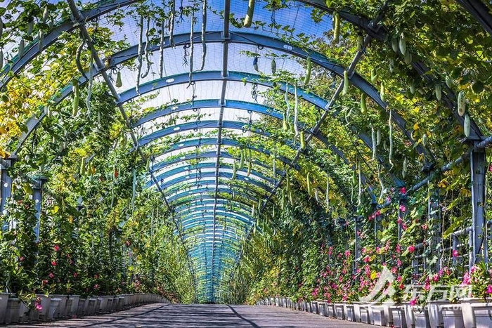 此外,1号门外广场及园区主游线周边种植15个优秀向日葵品种,种植面积约一万平方米。园内的廊架与花桥也将被多彩的蛇瓜、老鼠瓜和瓠瓜等花果装扮起来。同时,全园花境中各类鼠尾草等唇形科花卉作为特色,搭配正值盛花期菊科花卉,形成壮观绚丽的秋韵景色。