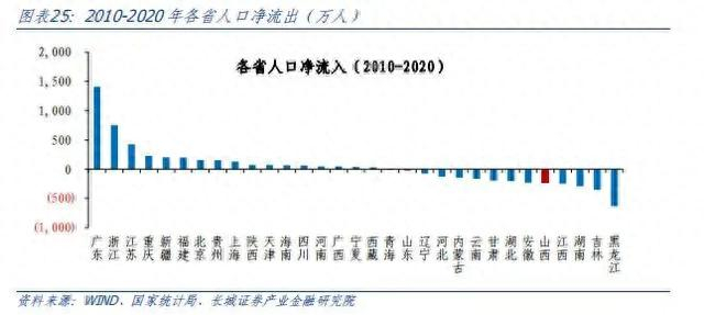 山西省人均产出相对较低,近十余年人口向外输出,疫情以后人口略有回流。2021年末山西以3480万的常住人口位居全国第18,而同期拥有3539.5万的户籍人口,可见山西仍属于人口净流出的省份。我们用第七次与第六次人口普查的常住人口差额,剔除近十年山西常住人口自然增长,来近似表示常住人口净流入,山西2010-2020年常住人口净流入为-238万人,也表明山西近十年整体向外省输出人口。实际上2000-2019年山西的人均GDP始终低于全国平均水平,且差距不断拉大,生产力相对于经济强省有较大差距,劳动力向省外输出也属于正常现象。