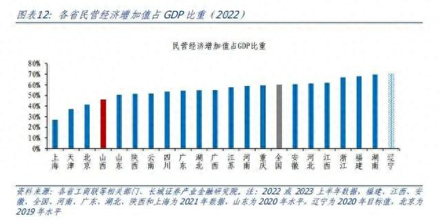 山西省民营经济有待进一步发展。根据山西省工商联十三届二次执委会议发布的《山西省民营企业社会责任报告》,2021年,山西省民营经济增加值达10390.6亿元,占GDP的46.0%,低于全国水平。而山西省市值、营业收入双百亿的14家A股上市公司中,仅两家为民营企业。山西省高度重视民营经济发展,先后出台民营经济发展“30条”、“23条”和促进民间投资“40条”等支持政策,并于2023年3月制定印发《向民间资本推介项目长效机制》,以求进一步放宽市场准入、构建高标准市场体系、激发民间投资活力。