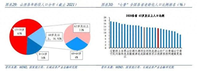 山西省的老龄化问题相对较轻。根据第七次人口普查结果,山西省65岁及以上人口占比为12.9%,低于全国同期的13.5%,居各省偏低水平,不过与第六次人口普查结果相比,山西65岁及以上人口占比提高了5.33个百分点。另外,“七普”显示山西0-14岁人口占比较“六普”下降0.74个百分点至16.3%,少于全国的17.95%。随着2017年以来出生率逐年下降,山西的少子化趋势也在逐渐显现。