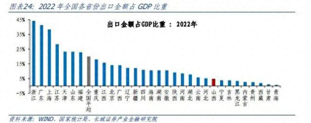 但也要看到山西出口后劲有待加强,2022年出口金额1211.4亿元,同比下降10.3%,今年前7月,山西出口额进一步下降21.1%,增速均不及全国。山西省出口对GDP贡献依然不高,2022年山西出口占GDP比重4.7%,明显低于全国平均水平(19.8%)。