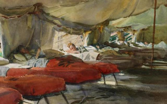 约翰·辛格·萨金特1918年的画作《医院帐篷内部》描绘了西班牙大流感和一战时期的社会氛围。