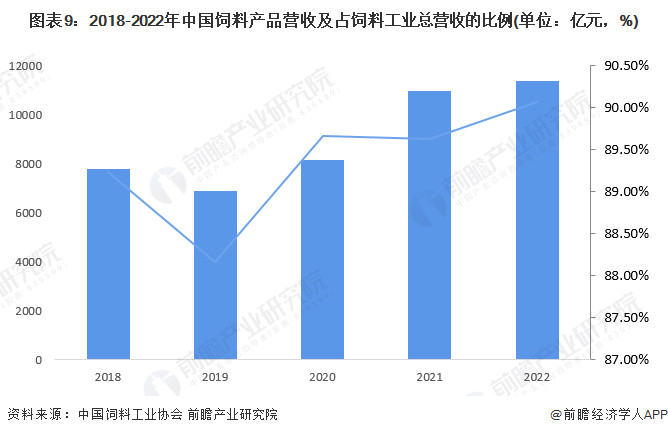 2、中国饲料产品产值:2022年接近1.2万亿元