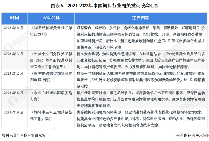 2021-2023年中国饲料行业相关重点政策汇总解读如下: