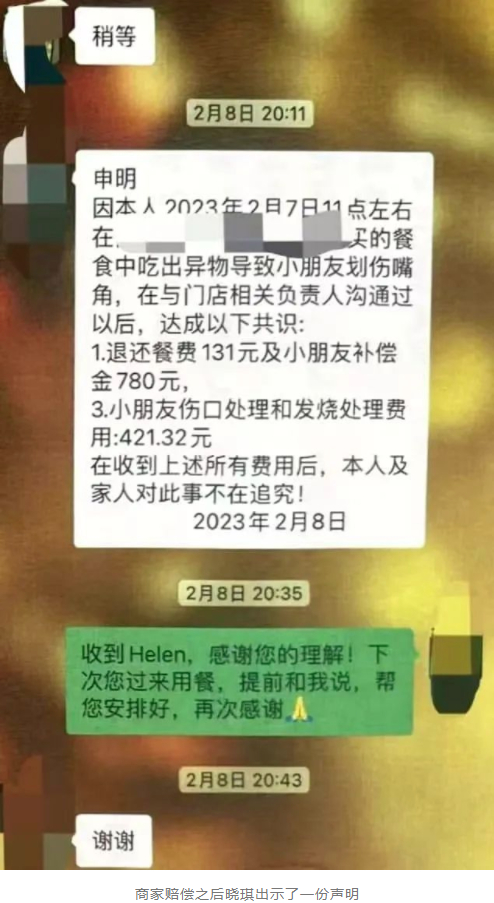 期间,虽也有商家曾要求晓琪提供进一步就医记录或安排员工上门探望,但均被她以各种理由拒绝。不少商家出于对声誉的考虑,选择了赔钱来息事宁人。