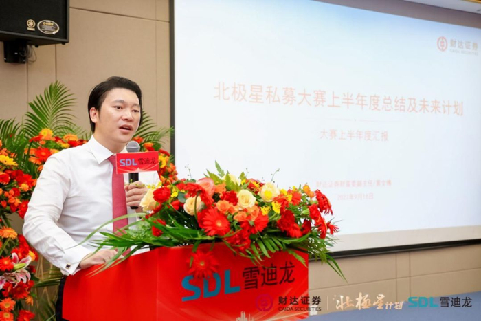 大赛主办方及协办方等多位领导分别作分享。财达证券财富委副主任、机构客户部总经理黄文博为大家介绍北极星私募实盘大赛上半年度赛况。