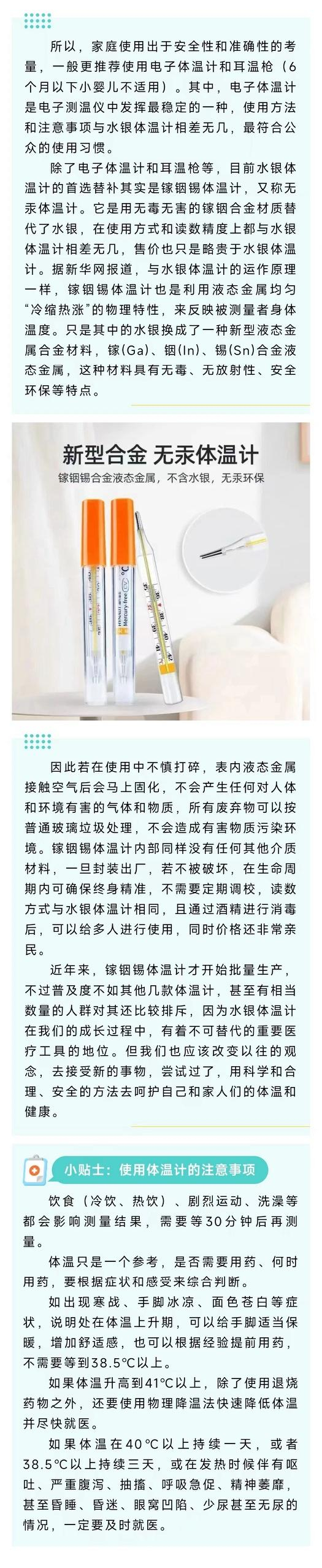 不管生活中使用水银温度计的方法是不是得当,总不能保证每一支水银温度计都能用到完全“包浆”才能安全退休吧?所以,防患于未然,减低有毒有害物质对健康的威胁才是当务之急。