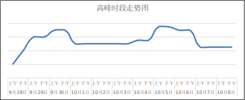 预计从9月28日(假期前一天)下午2时开始流量增长持续至20时,22时至29日2时,受零时开始免费影响,部分路段将会出现短时缓行情况。29日(假期第一天)从早7时开始至20时分段出现车流高峰。30日(中秋后一天,假期第二天)预计会出现第二波高峰。1日至4日流量较日常高位运行,5日至6日为返程高峰,返程高峰时间从7时至22时,间断出现高峰。7日和8日(假期结束后两天为周末)仍可能会出现车流小高峰。