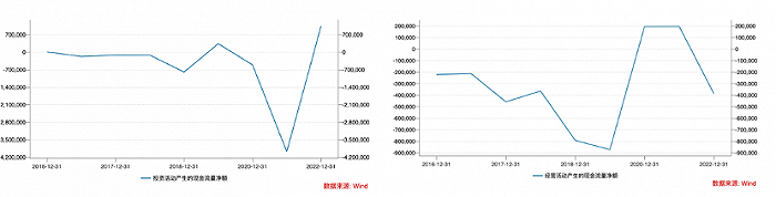 上图为蔚来的经营和投资行为产生现金流的情况,可以非常确定看到蔚来自成立以来现金流的利好窗口期非常之短,经营活动现金流仅在2020-2021两年为正(主要受购车补贴政策等因素影响,蔚来毛利率回正),但同期投资行为的大额支出又“吃掉”了经营活动现金流回正的利好。
