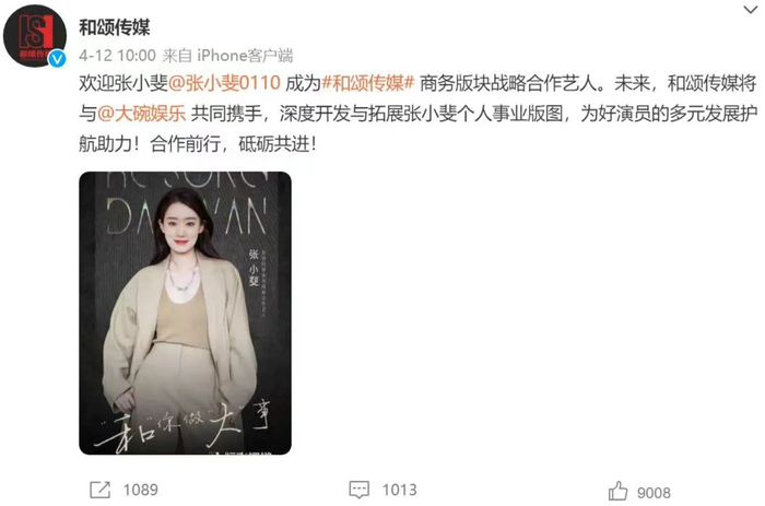 之后,她离开了贾玲公司,去了赵丽颖的和颂传媒。