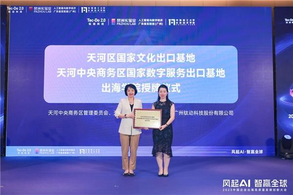 伴随全球化带来的新机遇和中国经济整体的飞速发展,中国优质文化产品和服务走出国门的需求愈发强烈。天河区作为广东省唯一同时获得国家文化出口基地、国家数字服务出口基地的区域,为钛动科技出海学院授予“天河区国家文化出口基地、天河中央商务区国家数字服务基地出海学院”,未来三方将合力推动天河区文化贸易,数字贸易高质量发展,助力中国文化、中国品牌高质量出海。