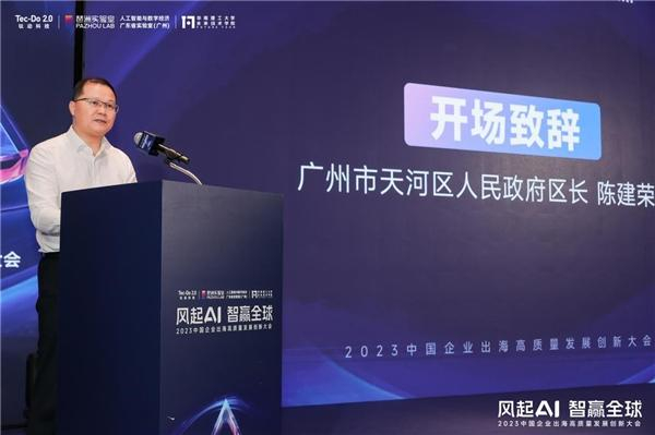 广州市天河区人民政府区长陈建荣出席并致辞,他表示,本次大会将为广州、天河抢抓机遇发展人工智能产业、数智赋能出海提供更多智慧力量。天河区将借鉴大会成果,充分发挥国家文化出口基地和国家数字服务出口基地示范带动作用,加快打造人工智能产业发展新高地。