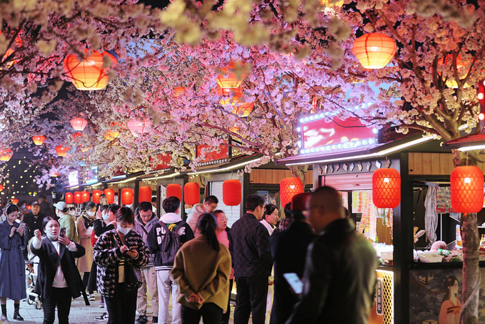 徐州回龙夜肆,街景科技打造了一个“国风版”樱花集市。灯火阑珊,夜樱盛放,国风集市,烟火升腾。这样的一幕,太适合发朋友圈了!