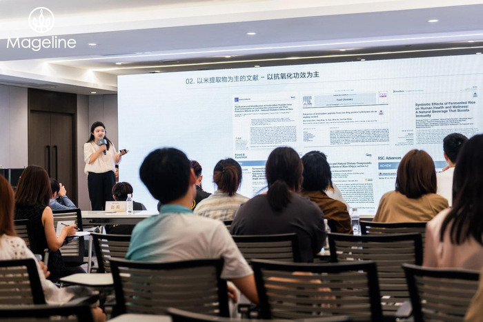 麦吉丽首席研发官杨帆先生讲述在刚结束的第33届IFSCC国际化妆品科学大会上⻨吉丽关于前沿抗衰科技全新突破。自2019年起,麦吉丽正式加入国际化妆品化学家学会联盟(IFSCC)并成为金牌会员,连续4年参加IFSCC会议,包括海报以及演讲的形式发表共计29篇按科研成果超前全球的皮肤科学研究,系列拥有技术壁垒产品成分获得超300项国家专利;首次将Alpha-KG应用于抗衰化妆品 提升细胞能量因子加速细胞代谢,引领世界的抗衰成分解决方案;产学研一体的品牌硬核实力,面向B端及C端,多维立体呈现品牌科技硬实力。作为受邀专家之一的四川大学华西医院化妆品评价中心体外评价负责人熊丽丹副教授向现场嘉宾分享了炎性光老化:从机制到麦肤因修复策略。让博主和媒体朋友们深刻了解麦肤因与其他成分的差异化,以及麦肤因、琥珀酸能够减轻光老化成纤维细胞氧化应激和细胞衰老,通过抑制CXCL2分泌而抑制TNF炎症通路,发挥光老化保护作用的工作原理。