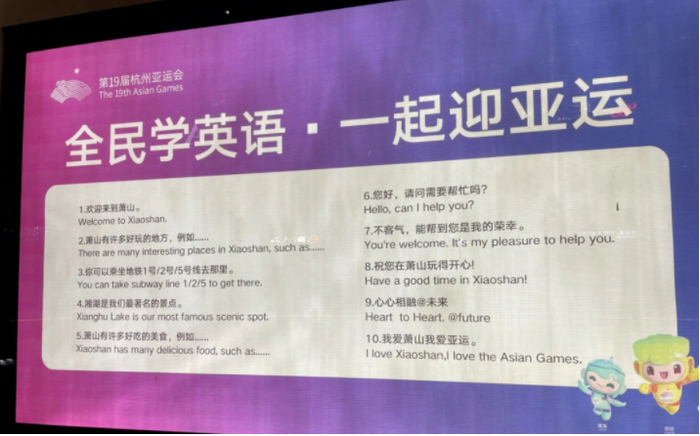为了向全世界游客抛出橄榄枝,杭州很早就对本地人喊起了口号:全民学英语,一起迎亚运。
