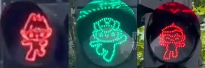 哪怕是红绿灯,也已经被吉祥物们所占领。