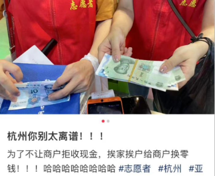 虽然到处都是铺天盖地的亚运会广告语,浙江人却也实实在在享受到了一些运动福利:绍兴更是选择了直接发钱,实打实的100块的数字人民币红包;