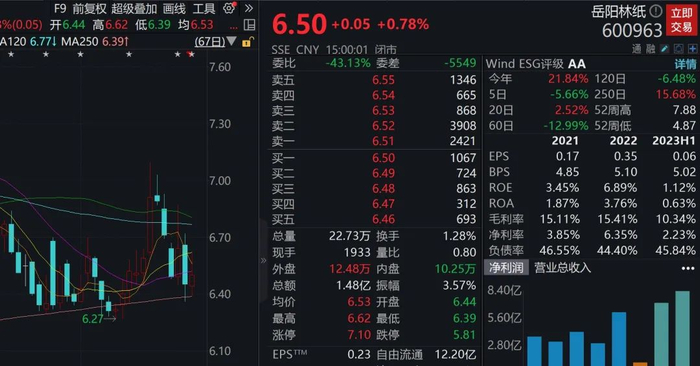 从盈利来看,上半年永安林业、岳阳林纸净利润规模居前,依次为1.1亿元、1.03亿元。