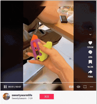 据了解,“萝卜刀”是一款由塑料制成的仿刀玩具,因其外形酷似胡萝卜,并且是借助自身重力实现刀体滑动,所以也叫“重力萝卜刀”。