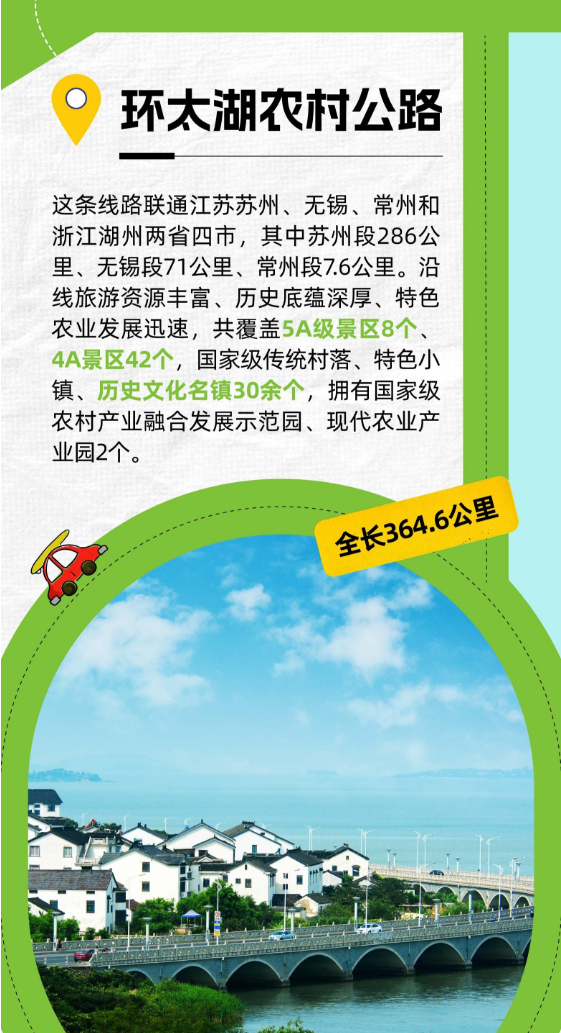 此外,本次发布会,江苏还发布了《江苏最美农路——10条自驾游线路》,邀请省内外市民自驾畅游。据介绍,江苏目前建设有农村公路里程达14万公里,实现行政村通双车道四级公路全覆盖,创建“四好农村路”全国示范县累计20个,创建总数全国第一。10条最美农路包括环太湖农村公路,常州溧阳1号公路瓦屋山线,连云港连云区大栀尖路,泰州兴化千垛美路,盐城旅游公路1号东台段,镇江丹徒301县道大世线,南京浦口203县道汤虎线,徐州铜山308县道玉带路,宿迁宿豫幸福大道一号线,淮安环洪泽湖公路高蒋线。