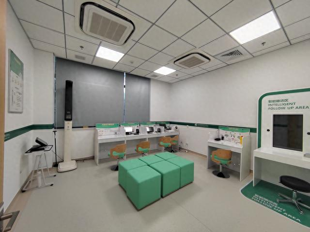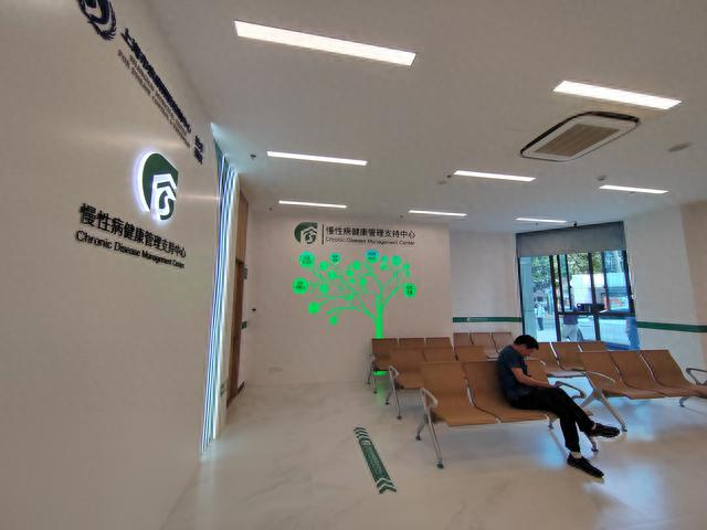 位于一楼的慢性病健康管理支持中心,配有精准测压仪、智慧血糖仪、身高体重测量仪和肺功能检测仪。