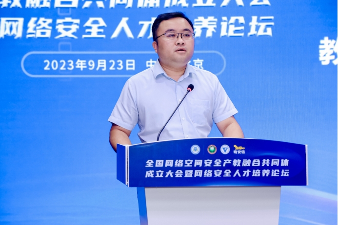 奇安信集团副总裁何新飞代表共同成员单位,宣读了全国网络空间安全行业产教融合共同体“北京共识”:建立健全机制保障共同体实体化规范运行、同心协力整合网络空间安全优质产教资源、构建网络空间安全产教融合供需对接机制、联合开展网络空间安全人才培养实践探索、协同开展网络空间安全领域技术攻关项目、校企深度联合开发网络空间安全教学资源、聚力聚合打造网络空间安全国际示范品牌。