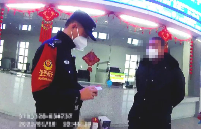 当天15时,在吉林蛟河西站,售票员在为一名男性旅客办理业务时发现,该旅客身份证件无法正常读取,售票员改用输入身份证号码重新尝试多次后,仍无法识别身份,售票人员随即将这一情况告知了现场执勤民警。