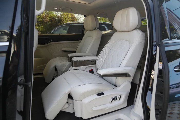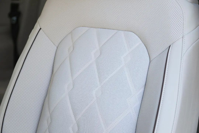 第二排座椅整体设计是两个独立带腿托的航空座椅,高配带座椅加热、通风和按摩。有变化的是座椅经过重新优化,乘坐舒适度对比之下有明显的提升,减少了过去靠背的凸起感。皮质330T豪华版和尊驰版升级为真皮座椅,带菱形格纹路的高档真皮座椅则覆盖至高配的380TSI尊贵版和旗舰版。