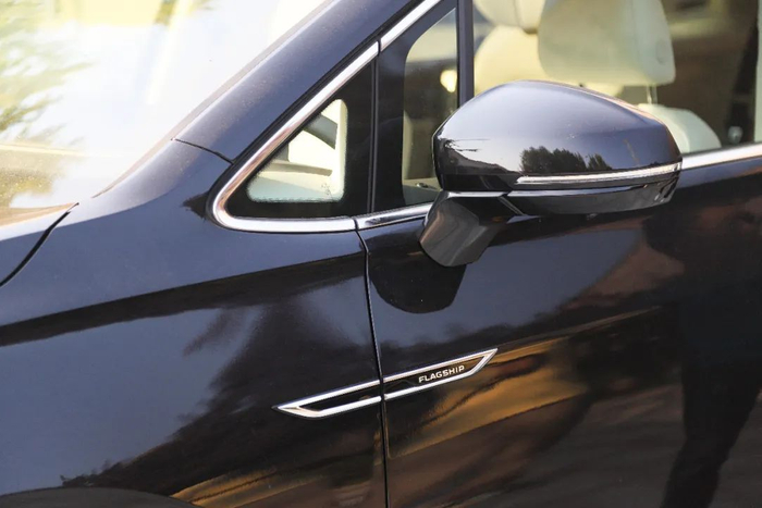 侧面线条简洁干净,超五米三的车身长度让整个体态修长优雅。底盘相比同级有些偏高,但也带来了更高的通过能力,应付国内常见的烂路威然会更轻松一些。配置上380TSI尊贵版和旗舰版稍有些变化,在后视镜位置增加了礼宾灯。