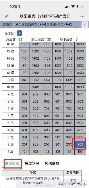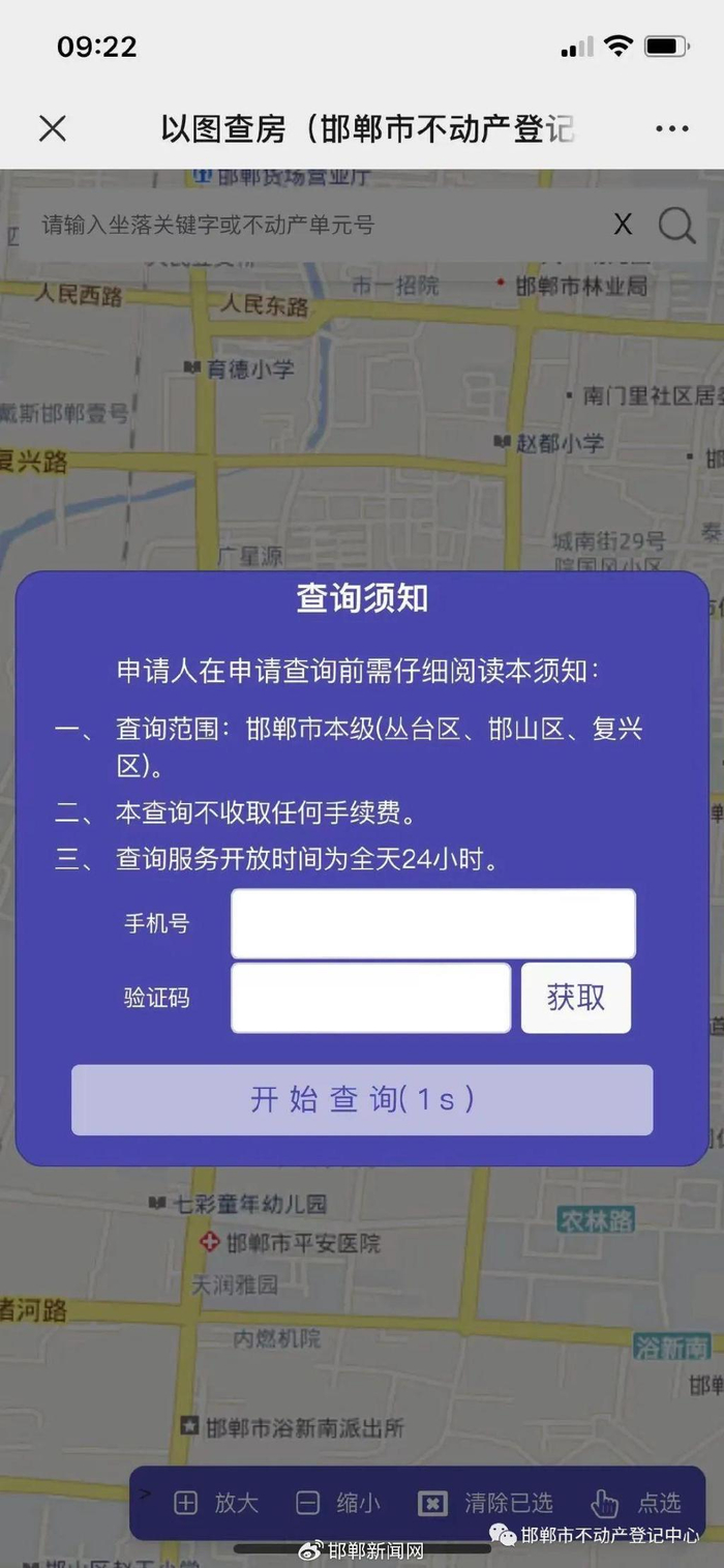 为贯彻落实我市深改委关于不动产登记改革工作任务事项,进一步优化营商环境,近日,邯郸市不动产登记中心推出“以图查房”微信服务功能,自然人可登录中心微信公众号,经手机短信验证后,通过查询地名地址或房屋坐落(小区名称)在天地图快速定位并叠加影像图,点击楼幢图形,即可查看该楼盘名称、地址,房屋用途、建筑面积、房屋坐落、抵押查封产权状态等不动产自然状态信息。