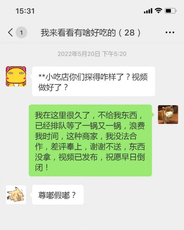 随后,张火火在账号上发布了该小吃店的相关食品视频并配有“这黑乎乎的难吃玩意,谁吃谁脑残#踩雷#难吃#千万别买”等内容的文案,该视频获赞165个、转发23次、播放量近千次、12人进行了评论。