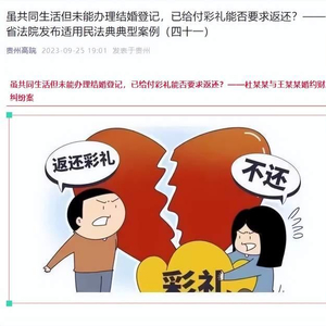 9月25日贵州高院消息,贵州黔西南州,女子收6.6万彩礼办婚礼后不愿与男方办理结婚登记,男方起诉至人民法院,请求女方退还彩礼。法院判决:两人共同居住、共同生活近十个月,酌情支持女方返还男方彩礼3.3万元。以下为全文: