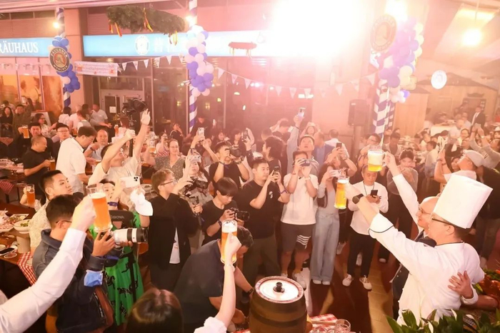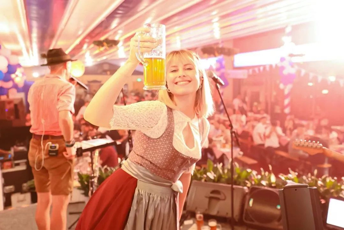 第30届普拉那啤酒坊北京十月啤酒节在北京燕莎中心凯宾斯基饭店开幕。本届啤酒节横跨中秋及十一黄金周假期,宾客每晚都能在普拉那啤酒坊特别搭建的啤酒节大棚中,体验这一集美食、佳酿、音乐、舞蹈、互动、社交为一体的德式节庆文化活动。穿上传统服饰载歌载舞,无限量畅饮啤酒节限定款十月特酿啤酒,大快朵颐外酥里嫩的脆烤猪肘、口感柔韧的碱水面包、肉香四溢的自制德式香肠等地道美食,参加新奇有趣的现场互动游戏,随着啤酒节特邀奥地利乐队Sweet Chili一同大声合唱,沉浸式体验一比一还原的慕尼黑啤酒节。