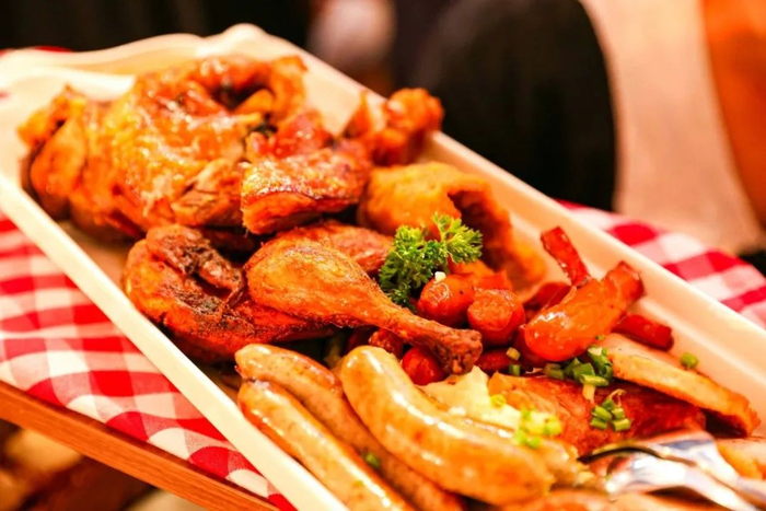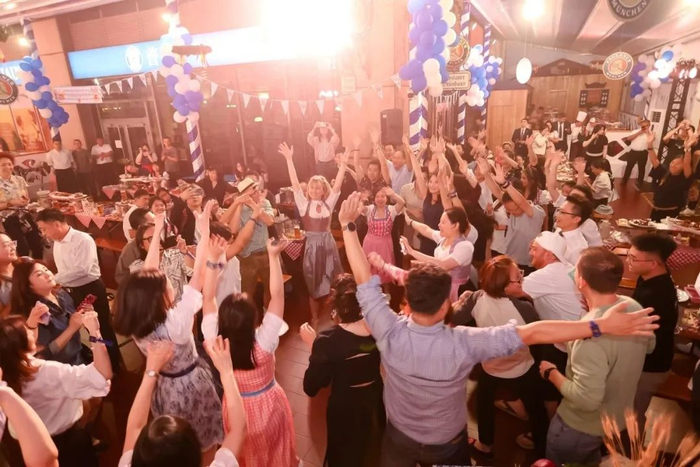 随着木楔敲开第一桶十月特酿啤酒,带着麦香的黄金液体喷涌而出,随着一声“Prost!”(德语:干杯!),在人群的欢呼声中,一场狂欢盛宴开始上演。口感绝佳的冰爽十月特酿,焦香酥脆的烤猪膝,十余种自制德国肉肠轮番上场;欢快的民间小调引来全场大合唱,耳熟能详的流行音乐让大家载歌载舞;新鲜有趣的啤酒节游戏,妙趣横生的表演挑战带来满场欢笑。最后的百人小火车互动更是把当晚的欢庆气氛推到了高潮,让远道而来的啤酒爱好者、肉食爱好者和聚会爱好者们一同享受这一金秋盛事。