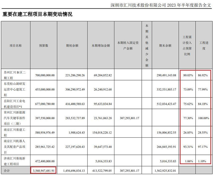 上面看过了汇川技术的生产情况,下面我们再来分析一下这家企业的在建项目。