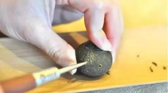 在冲泡之前,先用茶刀在小青柑四周及柑底部钻出九孔,再将其投入盖碗或壶中冲入沸水。